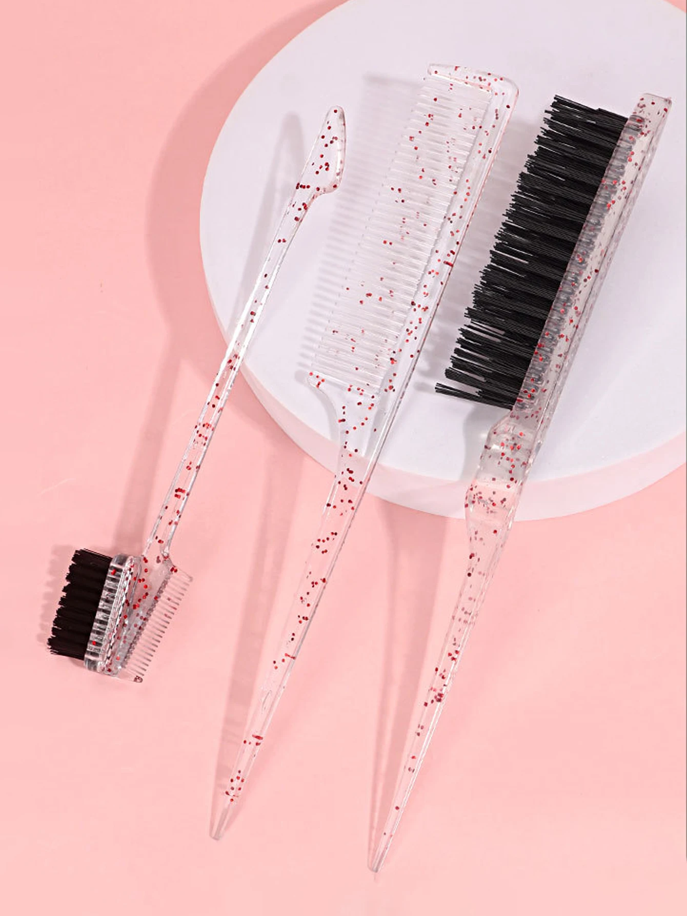 3-piece transparent comb set with double-sided edge control brush  tear brush and pointed tail comb Special for real hair wigs
