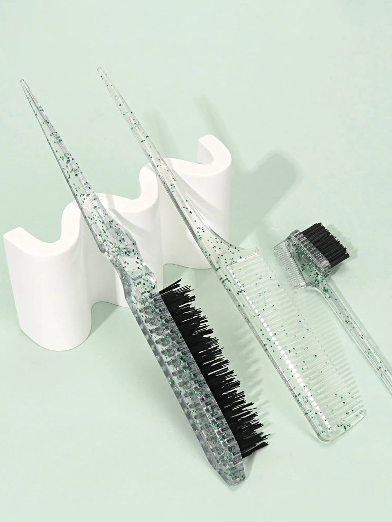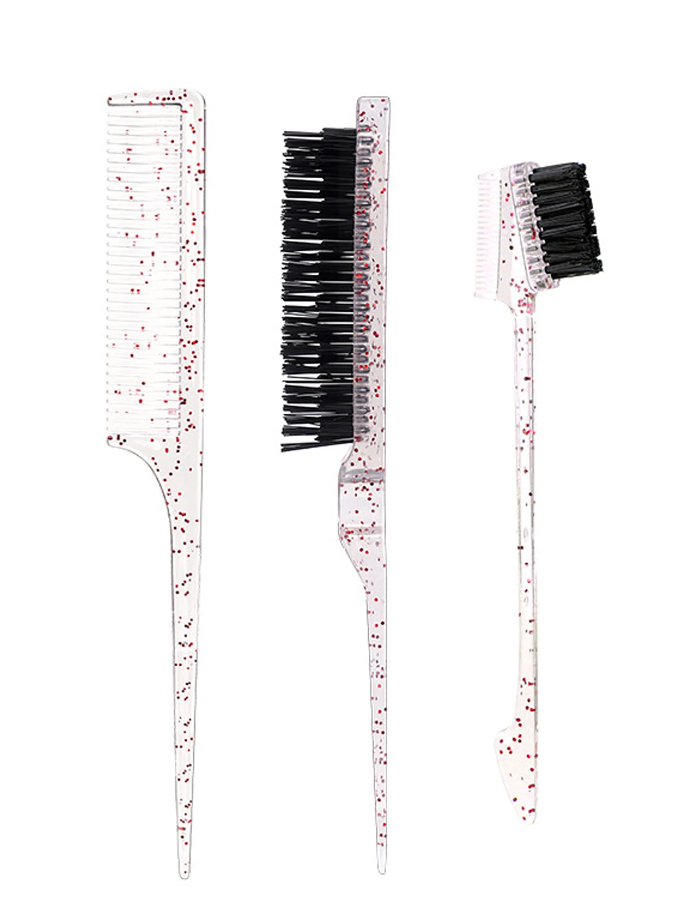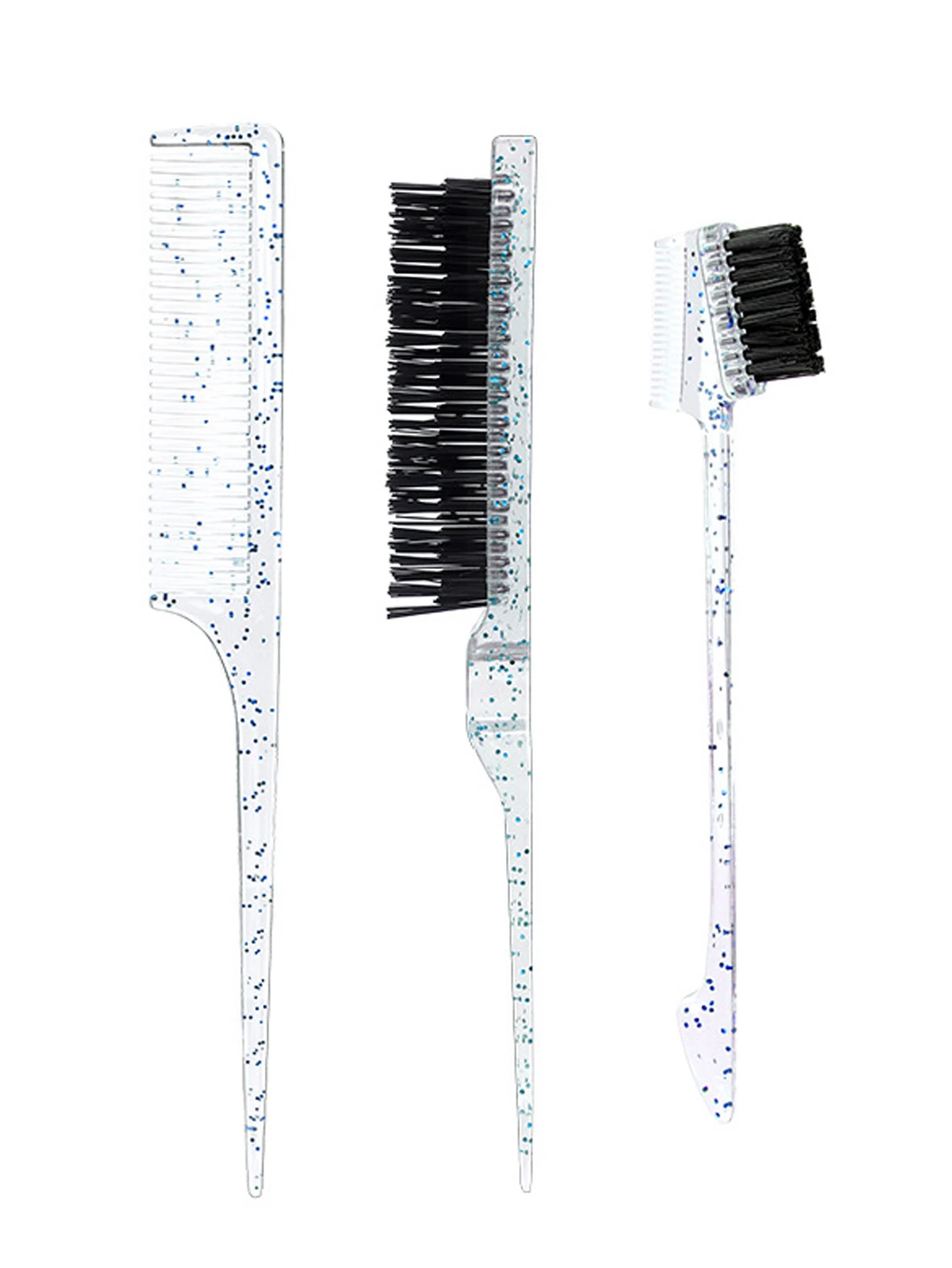 3-piece transparent comb set with double-sided edge control brush tear brush and pointed tail comb Special for real hair wigs