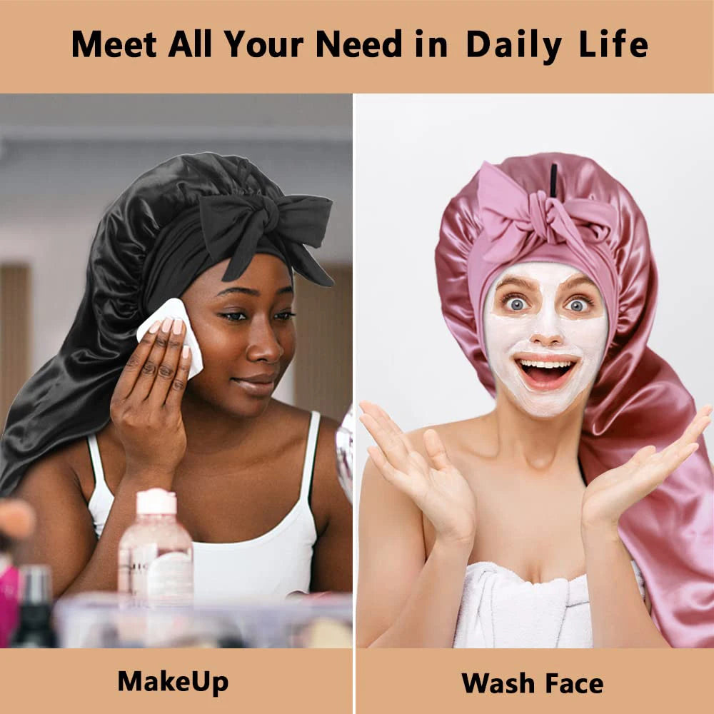 【Designed for Long Hair】Extra large size hair bonnet for sleeping. can fully cover the hair, one size fits all, not only the night cap you get, but also a perfect helper when you wash your face, make up, bathe or do things. Meet all your needs.