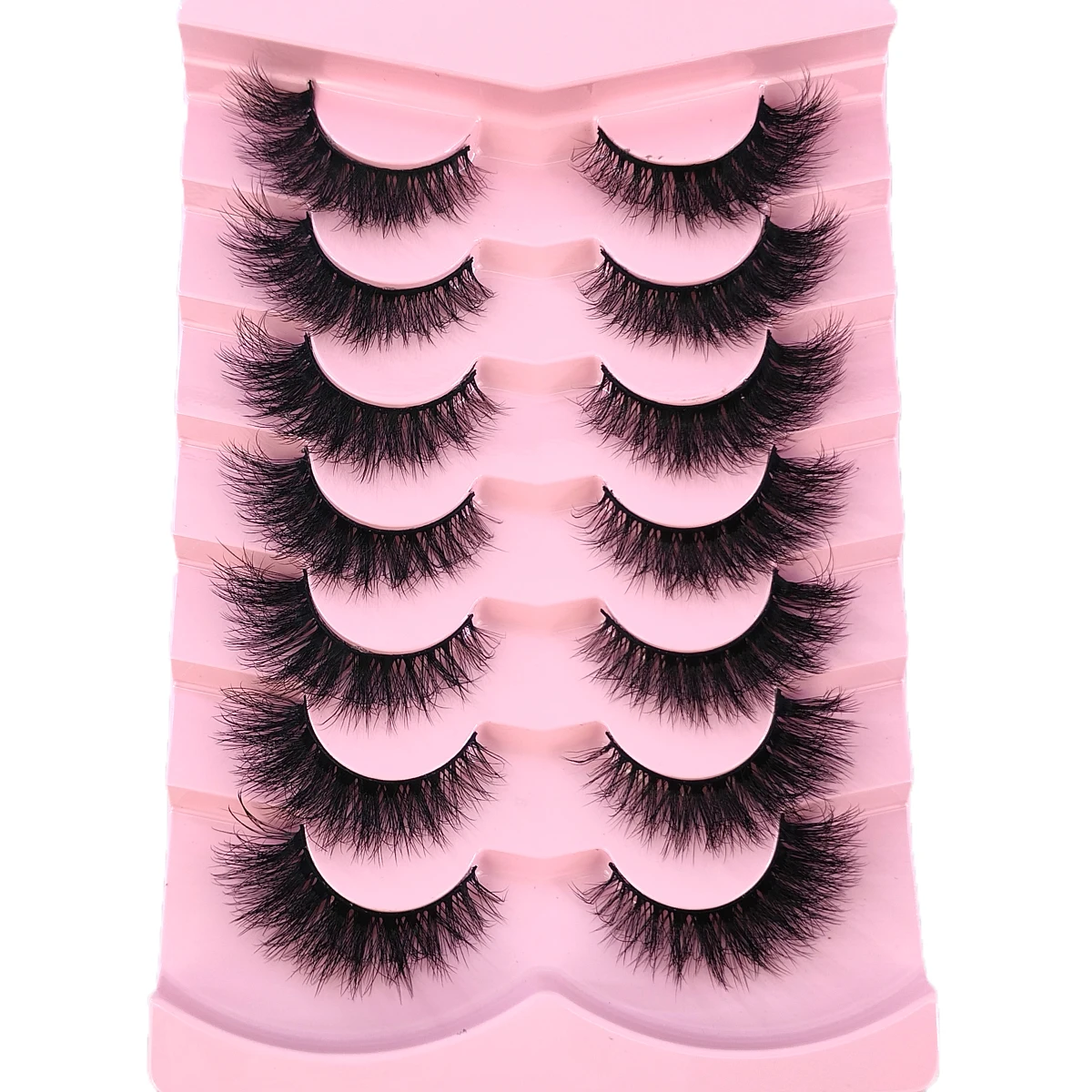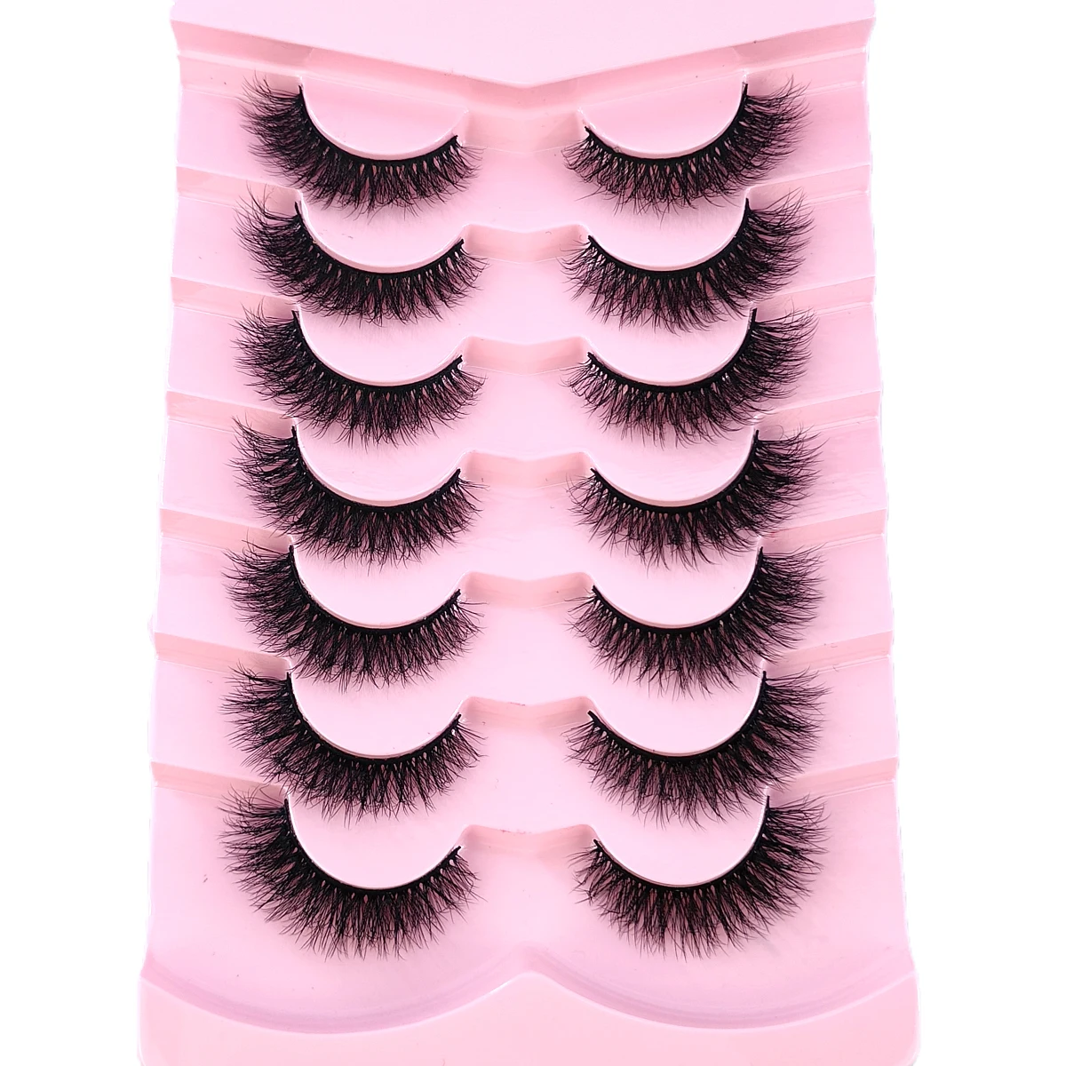 New 7 Pairs Mink Lashes Natural Look False Eyelashes Wispy Cat Eye Lashes Fluffy 3D Mink Lashes Natural Fake Lashes Strip Lashes