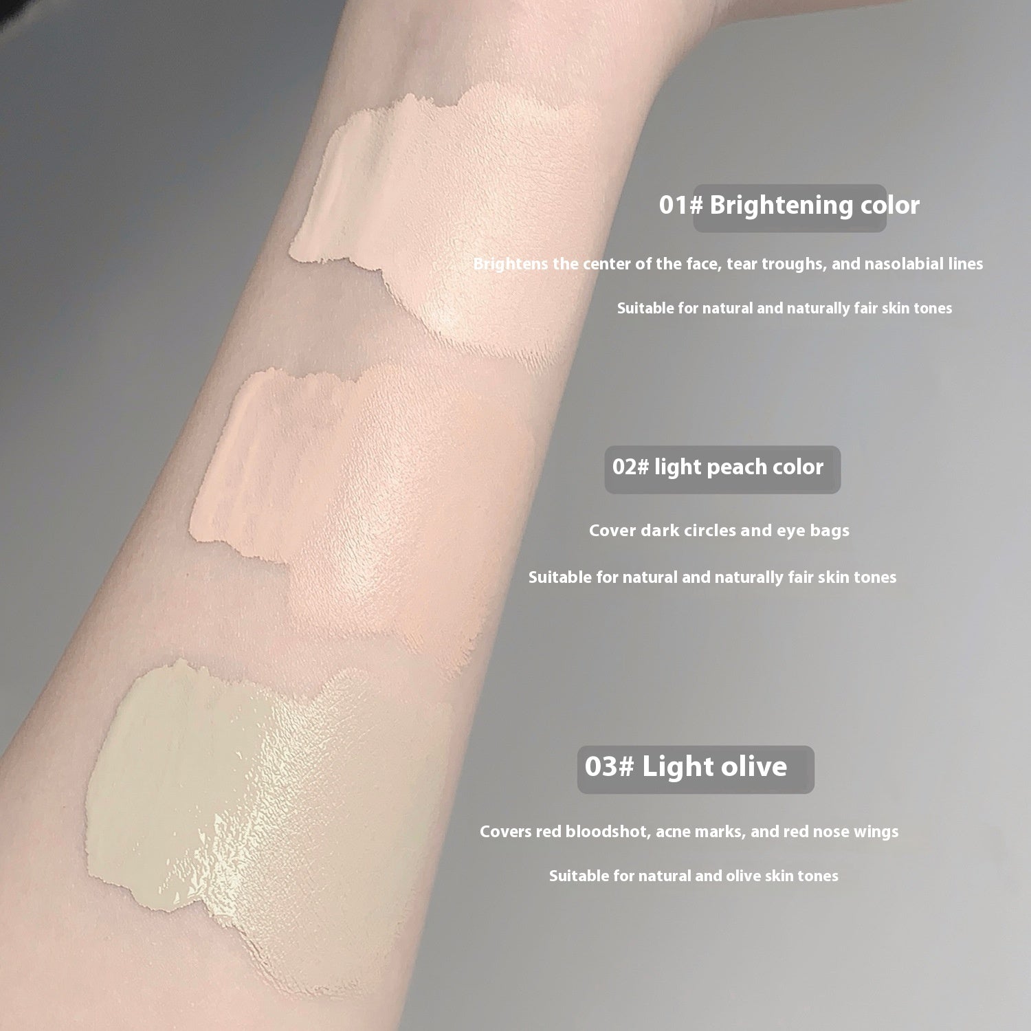 Color classification: 01# bright color, 02# light peach color, 03# light olive green